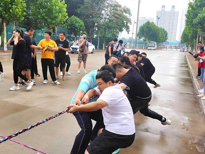 哨聲響起,比賽一觸即發(fā)!大家團結(jié)一致努力拼搏著!有的緊握麻繩,咬牙使勁;有的扎穩(wěn)腳步,不可撼動;有的身體向下傾斜,鉚勁拉繩……大家的勁往一處兒使,心往一處兒聚。全神貫注的眼神、奮力拉扯的身影,無不彰顯了員工們的意志。